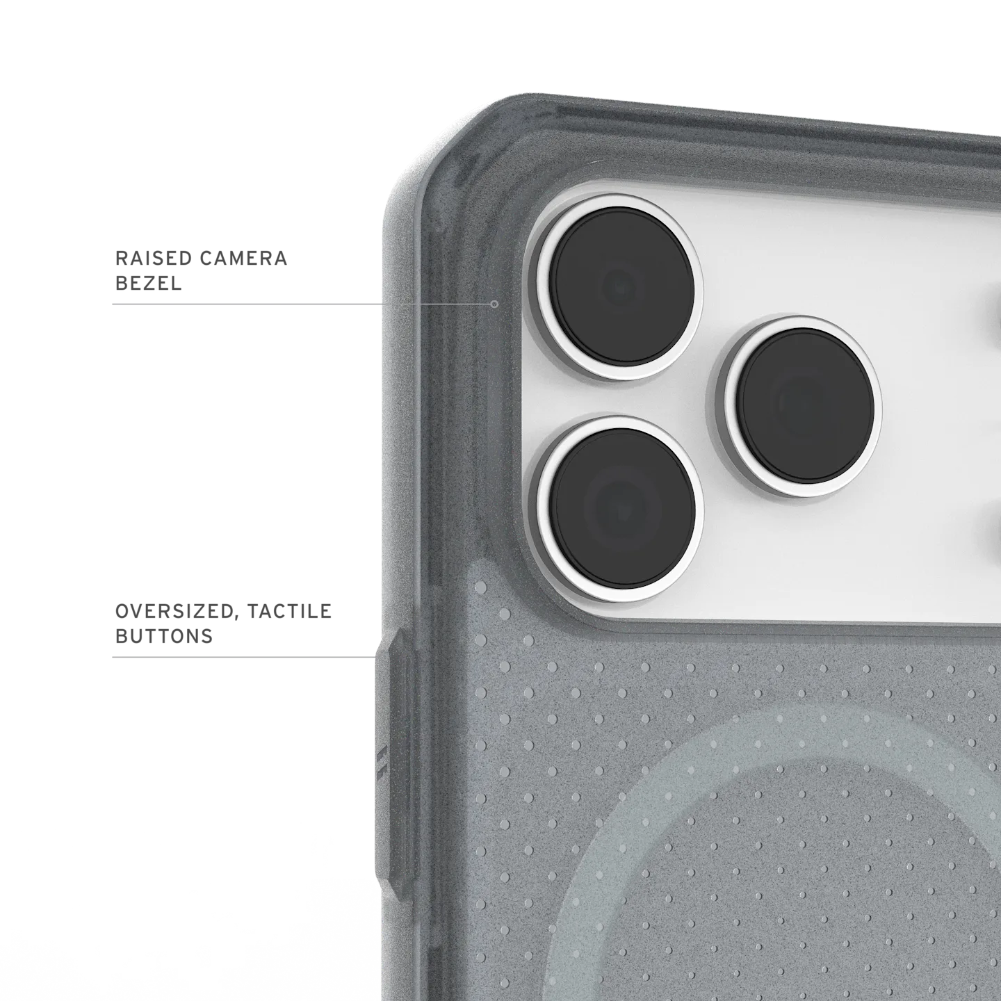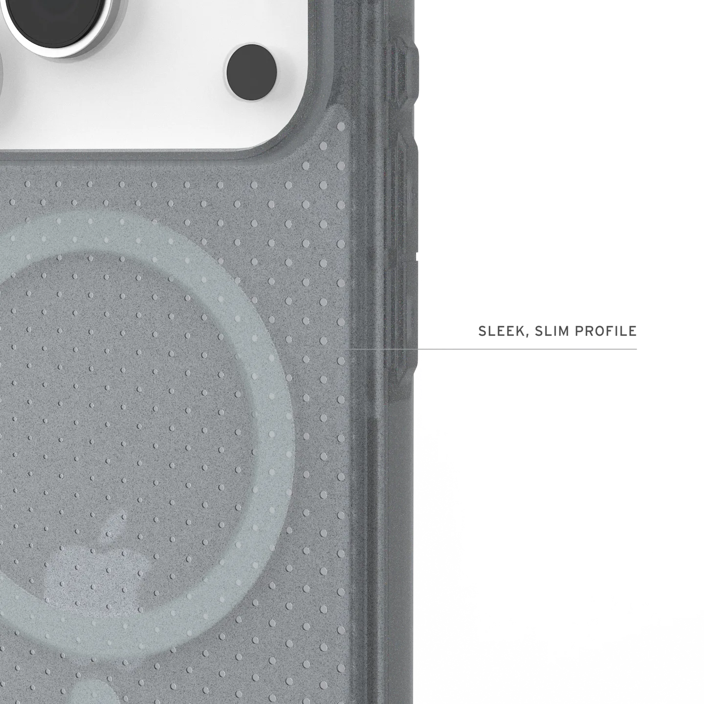 UAG Dot MagSafe เคสกันกระแทกดีไซน์เรียบแต่ไม่ธรรมดา มาพร้อมลาย Dot Pattern ที่เป็นเอกลักษณ์ ช่วยให้จับถนัดไม่ลื่น โครงสร้าง Comold PC , TPU เสริมแกน Soft Impact Core ป้องกันแรงกระแทกในทุกมุม ผ่านมาตรฐาน Military Drop-Test รองรับการตกกระแทกสูงสุด 15 ฟุต (4.6 เมตร) พร้อมแม่เหล็ก MagSafe Module ในตัว ที่ใช้งานร่วมกับอุปกรณ์เสริม MagSafe ได้ครบ ดีไซน์บางเฉียบ เปิดตัวด้วยโทนใส โปร่งตา ใช้ง่ายทุกโอกาส