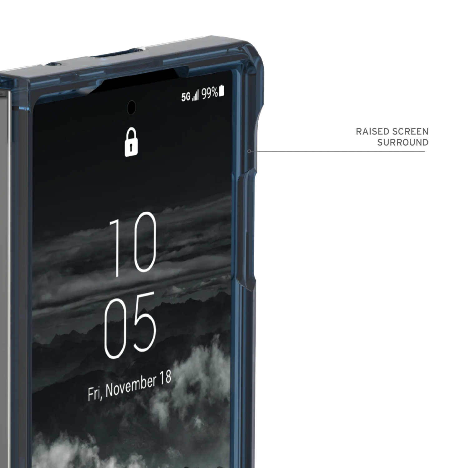 • ขอบเคสยกสูง พร้อมพื้นผิวกันลื่นและกันรอยขีดข่วน