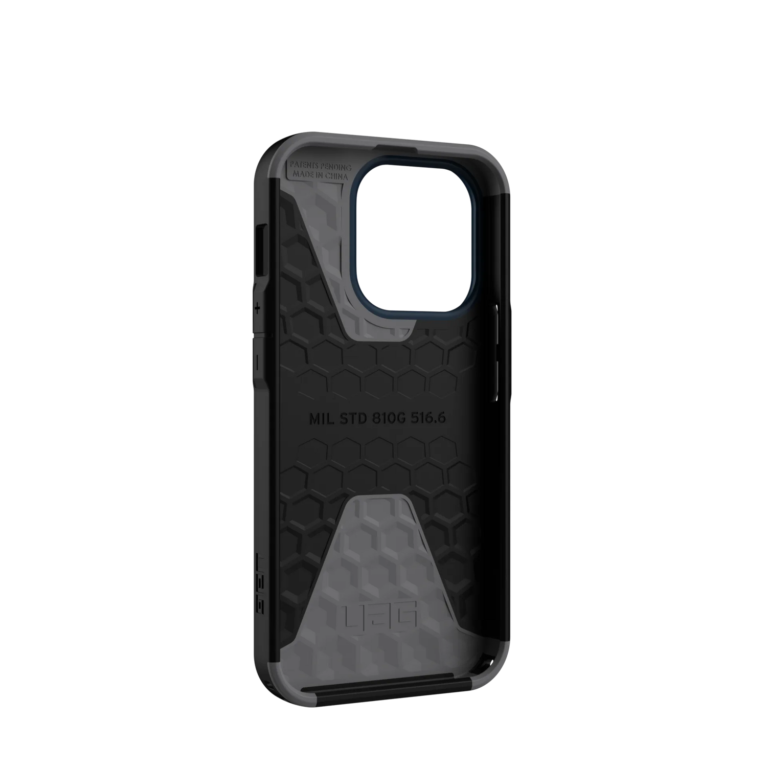 - ภายในเคสออกแบบให้มีลายหกเหลี่ยม เป็นเทคโนโลยี HyperCush เอกสิทธิ์เฉพาะของ UAG ที่ช่วยกระจากแรงกระแทกเมื่อตกกระแทกพื้น