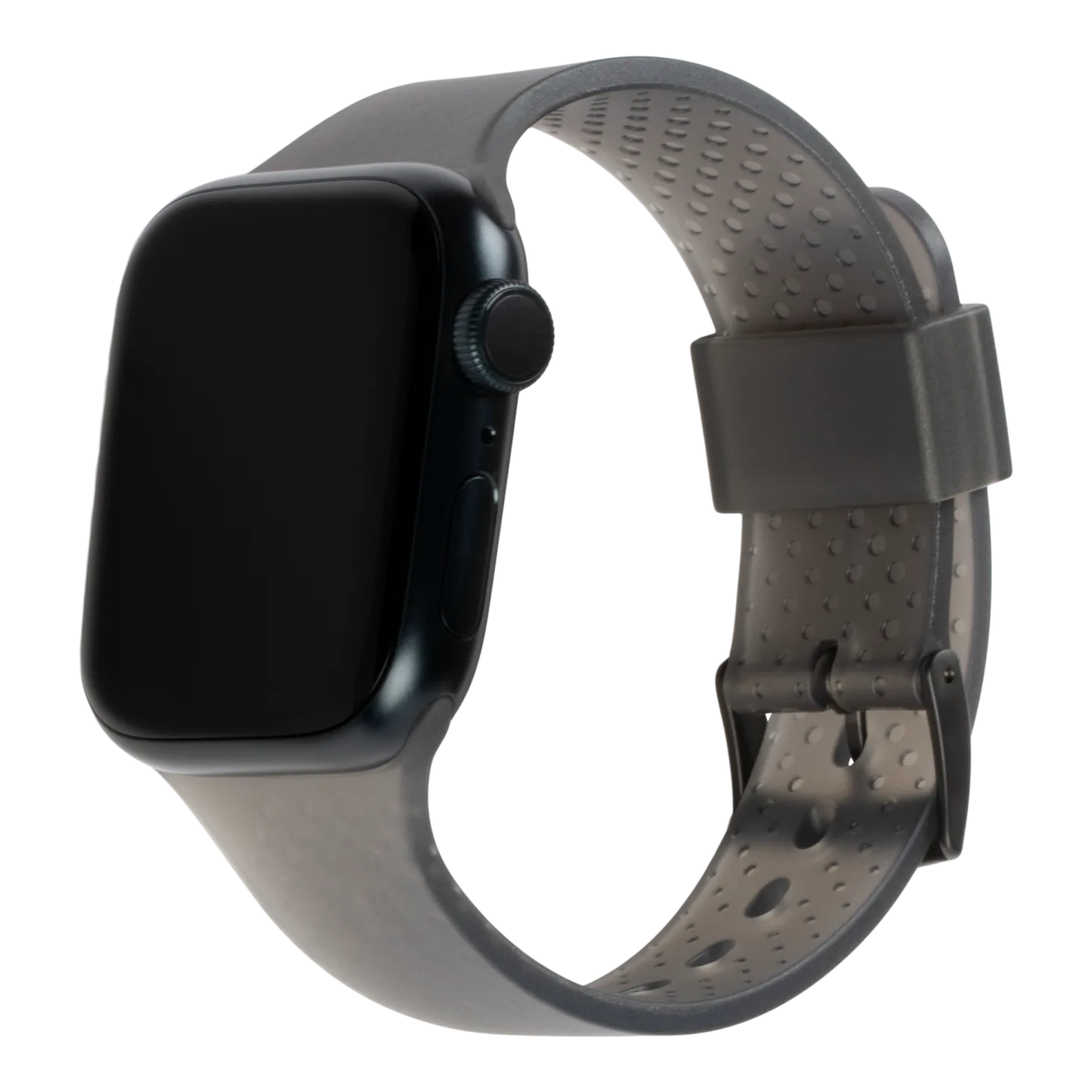 สาย Apple Watch แบบโปร่งแสง ดีไซน์พื้นผิวแบบมี Dot ดูงดงามเรียบหรูและช่วยระบายความร้อนได้ดีเยี่ยม สัมผัสนุ่มสุดพรีเมี่ยมด้วยสายรัดแบบซิลิโคนคุณภาพ ออกแบบมาให้คุณใส่สบายได้ทั้งวันในทุกกิจกรรม ไม่ว่าจะไปออกกำลังกายหรือในลุคทำงาน มาพร้อมตะขอเกี่ยวและห่วงยึดเป็นสแตนเลสที่มีความแข็งแรง ตัวผิวออกแบบให้มี Antimicrobial ช่วยลดแบคทีเรียบนตัวสาย Apple Watch ได้อีกด้วย