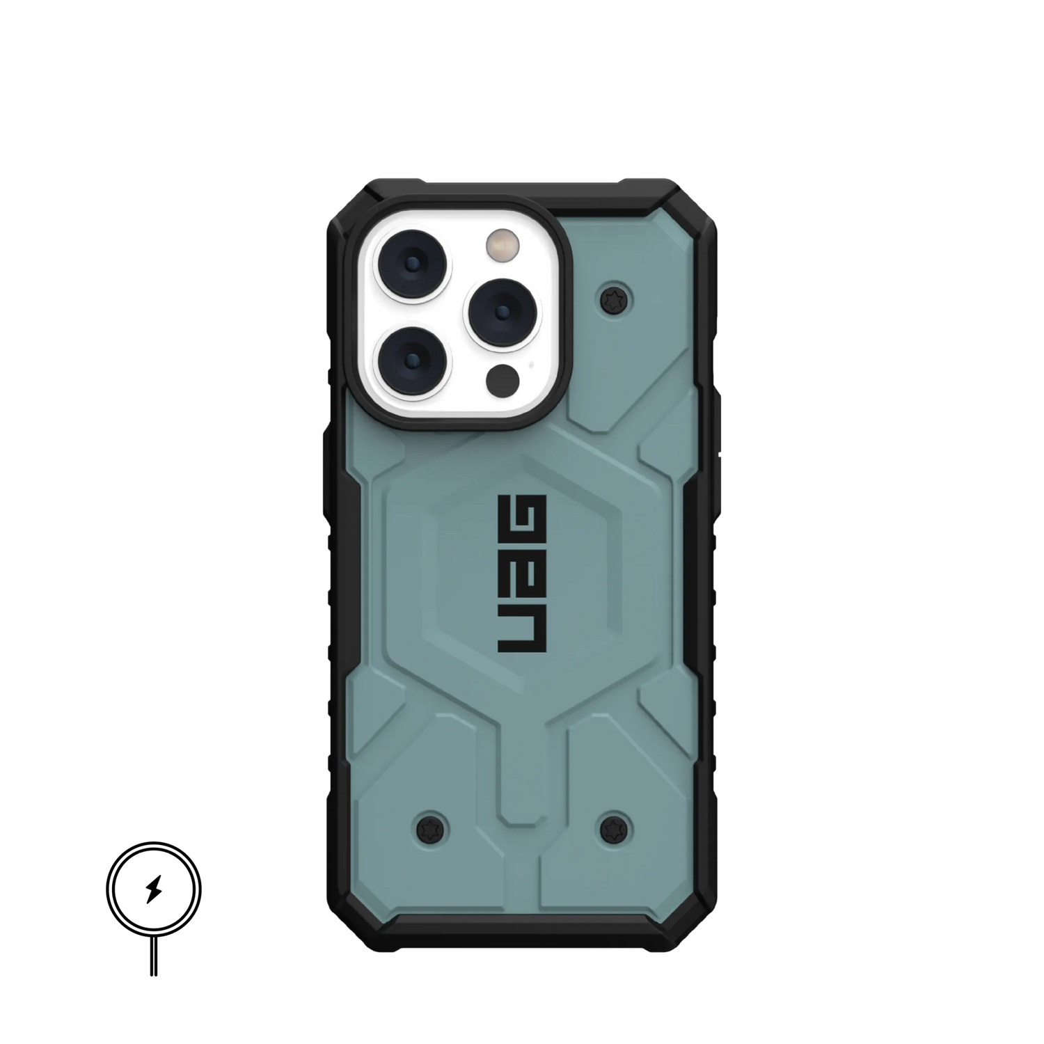 UAG Pathfinder MagSafe เคสกันกระแทกสุด Slim ออกแบบมาเพื่อคนที่รักในกิจกรรมแอดเวนเจอร์ ด้วยดีไซน์สุดเท่และลวดลายใหม่ที่เป็นเอกลักษณ์ต่างจากตัวเก่า มั่นใจด้วยการกันกระแทกถึง 2 ชั้น กันกระแทกสูงสุดถึง 5.4 เมตร ผ่านมาตรฐานการทดสอบ MIL STD 810G-516.6 ถือง่ายไม่หลุดมือง่าย มาพร้อมกับแม่เหล็กในตัว ทำให้ใช้งานกับ MagSafe ได้อย่างง่าย ติดแน่นไม่มีหลุด